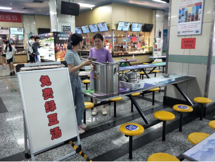 近日持续高温,后勤管理处(集团)为切实做好防暑降温工作,从6月19日起,学生餐厅向beat365师生免费供应绿豆汤,在炎炎夏日为广大师生送上一份清凉。
