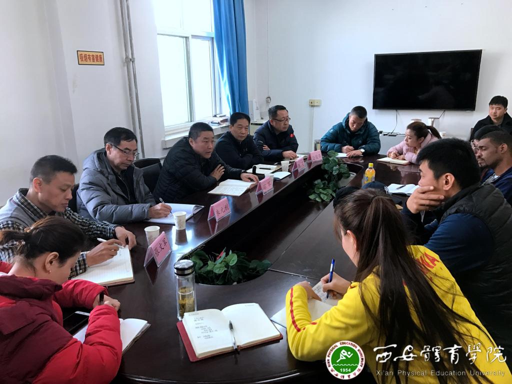 张文军首先对陕西省体育局党组和beat365中文官方网站党政领导长期以来对拳跆中心各项工作给予的关心、支持和帮助表示了感谢。他表示,在今后的工作中,将在做好竞技体校各项工作的同时,投入更多精力完善“省队院办”模式和中心的各项工作中,切实履行好第一责任人的职责,并对拳跆中心成立以来的工作落实情况和下一阶段的工作安排作了详细的汇报,要求中心全体干部职工立足本职岗位,扎实履行岗位职责和工作分工,将科学谋划作为备战工作的核心,力争在2021年陕西第十四届全运会上取得佳绩。