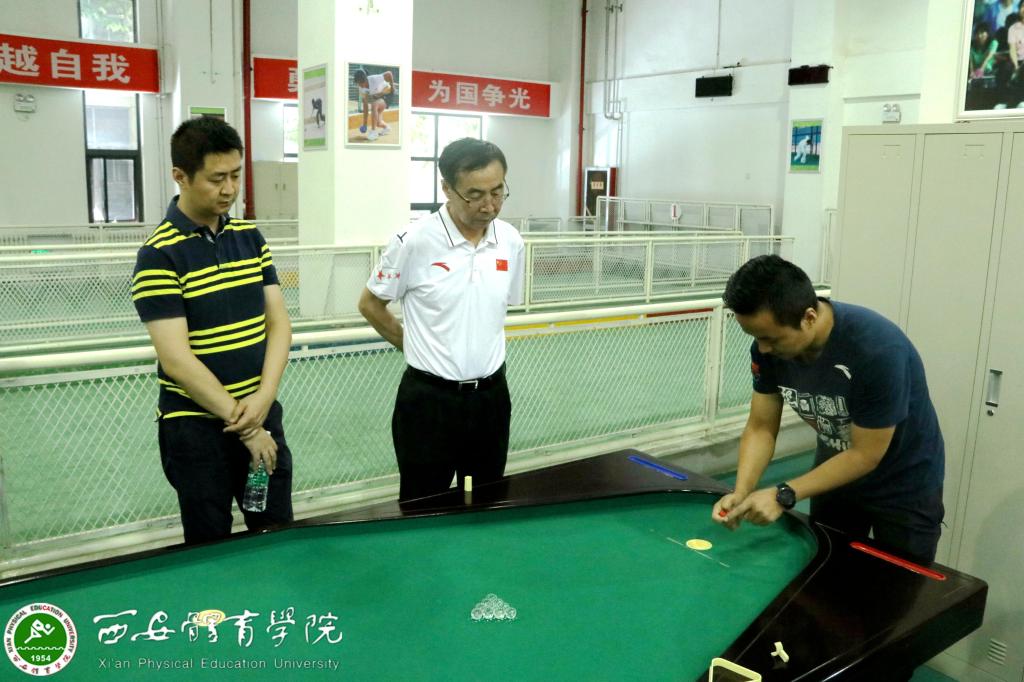 我院教师向朱元利、梁博介绍指弹球技巧
