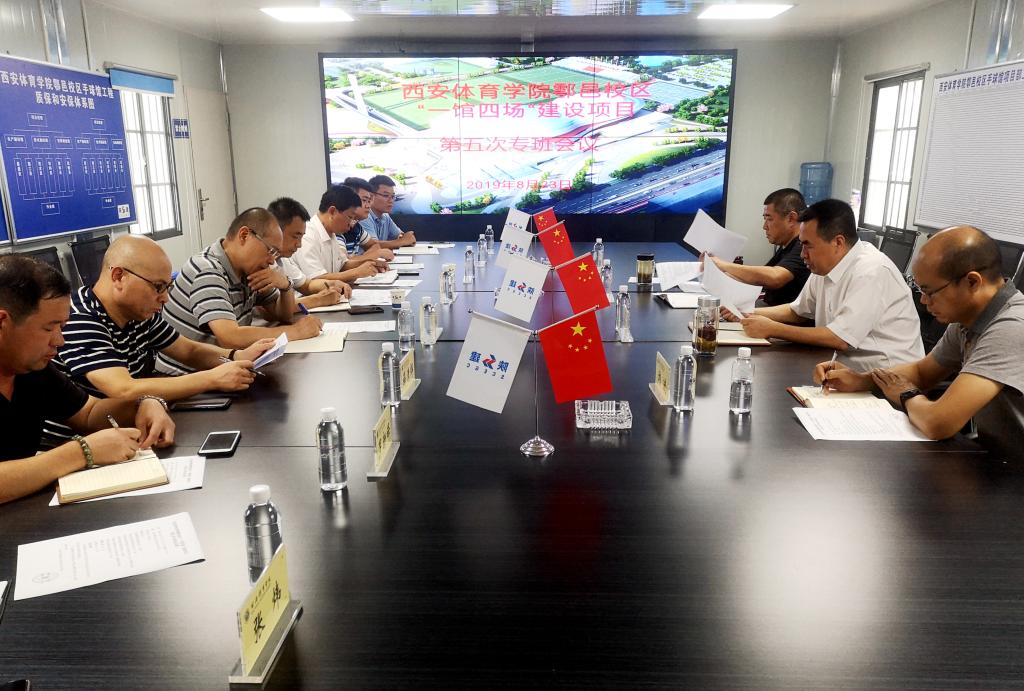 本网讯 8月23日下午,副校长李富生在鄠邑新校区项目建设现场主持召开了第十四届全运会beat365中文官方网站鄠邑校区“一馆四场”项目第五次专班工作会议。设计单位、手球馆施工单位及监理单位负责人、二期工程(十四届全运会曲、棒、垒、橄赛场及赛事服务附属设施)施工及监理单位负责人参加了会议,省体育局场馆处副调研员刘进列席参加。