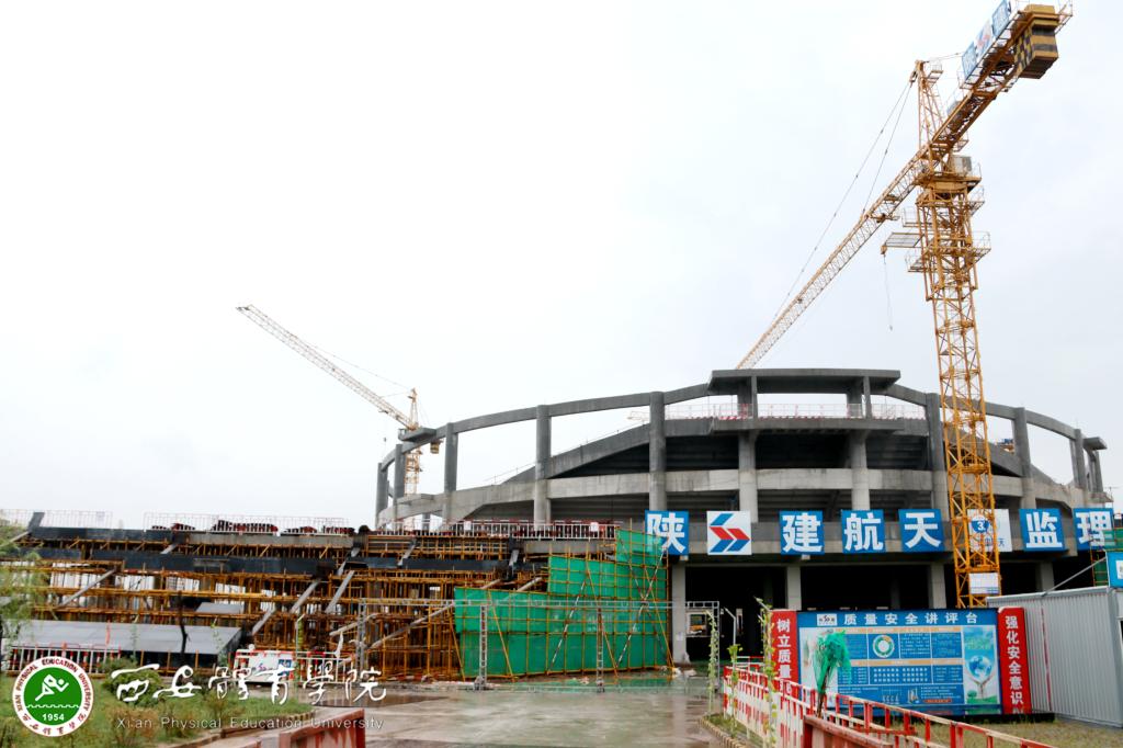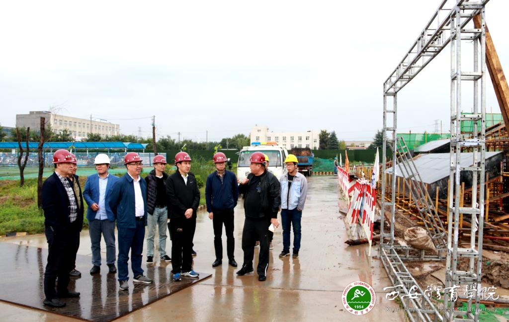 本网讯 9月17日上午,陕西省体育局副局长张王平、场馆处处长郭文、场馆建设专家郑建钢一行赴beat365鄠邑新校区检查十四运场馆建设进展情况,beat365副校长李富生以及基建处处长甘泽军、手球馆施工单位、监理单位负责人等陪同。