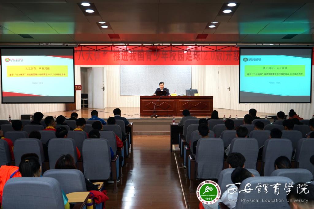 蔡向阳教授回顾了校园足球的发展历程,分析讨论了存在的问题与不足,介绍了校园足球八大体系的构思,提出了推进升级的思路。整个报告内容丰富,紧扣现实,问题深刻,让广大师生感受到了专家的风范,开阔了足球学院师生的学术视野。