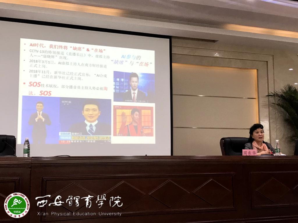 体育新闻与传媒学院:9月16日,体育新闻与传媒学院邀请西北大学新闻传播学院教授、博士生导师、周东华老师作了题为《AI参与的“缺席”与“在场”》的讲座,讲座由体育新闻与传媒学院副院长陆小玲主持。
