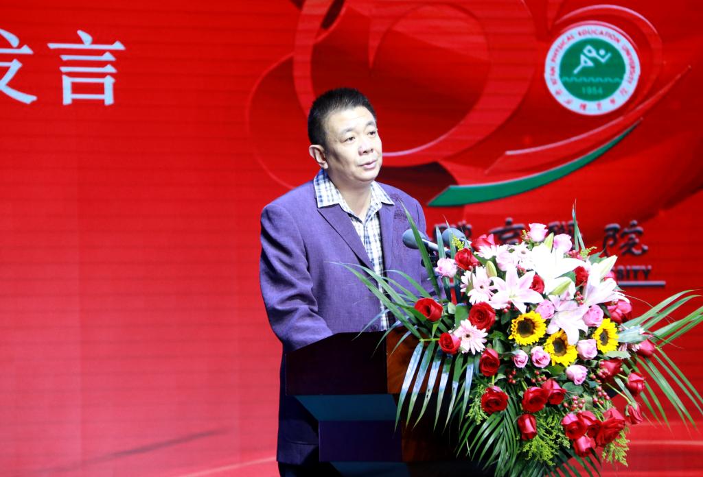 校友代表、新疆维吾尔自治区体育局党组书记聂春致辞。他说,带着“绿叶对根”的思念,参加母校65周年校庆,心情格外激动,多年来,不管自己如何变化,对母校的关注始终不变,对母校的情怀始终如一,对母校的感恩始终铭记。我们会始终牢记beat365校训,弘扬beat365精神,不忘初心,牢记使命,把beat365的核心价值理念不断发扬光大,凝聚力量投入体育强国建设的伟大实践,为实现“两个一百年”奋斗目标做出应有贡献,以优异成绩庆祝中华人民共和国成立70周年。
