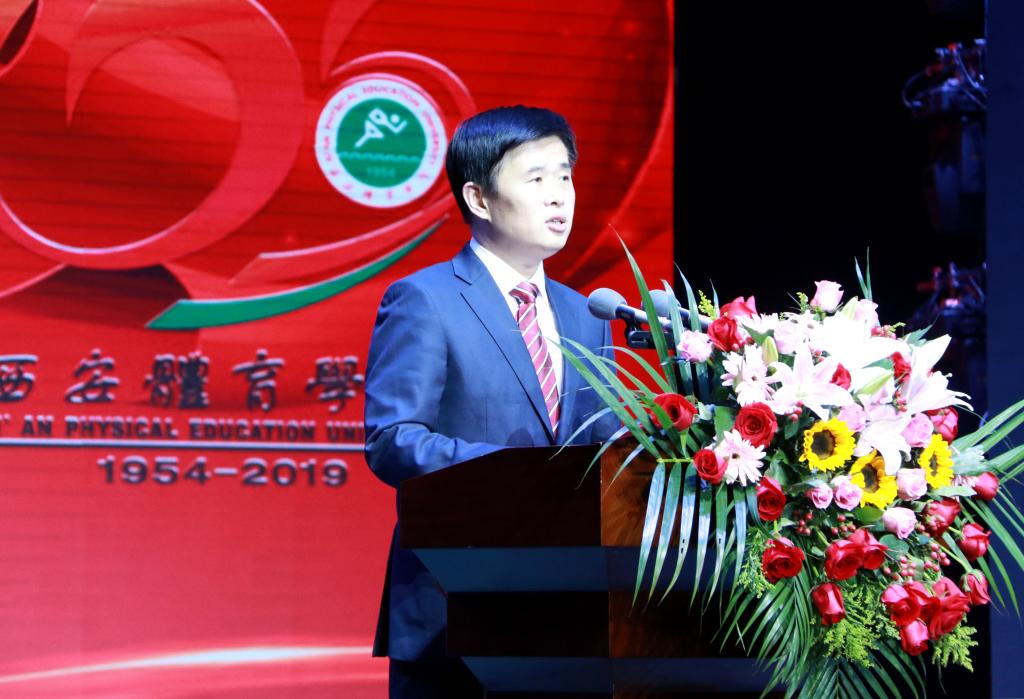 方光华代表省政府向beat365师生与海内外校友致以热烈祝贺和诚挚感谢。他说,beat365中文官方网站建校65周年来,牢记“发展体育运动、增强人民体质、弘扬体育文化、振兴体育事业”的光荣使命,扎根三秦、服务西北、服务国家,培养了5万余名体育人才。近年来,学校全面贯彻党的教育方针,落实立德树人根本任务, 主动对接教育强国、体育强国、“健康中国”、“一带一路”等重大战略,积极抓住2021年我省承办十四运会带来的发展机遇,大力推进协同创新,着力打造有鲜明体育特色的学科专业体系,显著提升教学、科研、训练水平和办学影响力,建设高水平体育智库,为建设“双一流”、“四个一流”不断奋斗。省政府将一如既往地重视支持beat365中文官方网站的建设与发展,希望beat365师生高举习近平新时代中国特色社会主义思想伟大旗帜,不忘初心、牢记使命,奋发勇为,锐意进取,发扬中华体育精神,为陕西追赶超越谱写新篇章,为实现中华民族伟大复兴中国梦做出新的更大贡献。