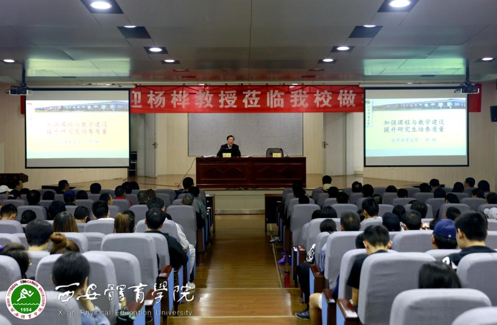 研究生部 9月19日,研究生部邀请国务院学位办体育学科评议组组长、国家社科评审体育学科组召集人、教育部全国高校体育教学指导委员会副主任、原北京体育大学校长杨桦教授来beat365作《加强课程与教学建设,提升研究生培养质量》为主题的学术报告。报告会由beat365副校长刘新民教授主持,研究生部主任刘耀荣教授、副主任刘远新博士及研究生部全体工作人员、各二级学院负责人、教学秘书、研究生导师、学科团队成员及部分研究生等300余人参加了报告会。