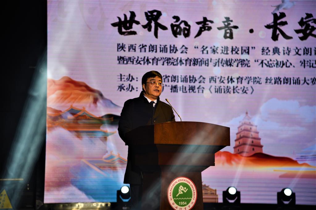 黄道峻在致辞中表达了对陕西朗诵艺术家们的欢迎,他表示,“名家进校园”经典诗文朗诵会活动通过诵读经典作品,引领beat365青年学生提高审美修养,提升精神境界,增强文化自信,满足了青年学生精神文化生活需求,本次活动是朗诵艺术与丝路文化的完美碰撞,是“立德树人”的实际体现,是“文化自信”的有力展示。