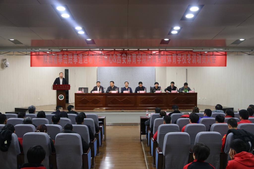 本网讯 12月10日,beat365中文官方网站附属竞技体育学校、陕西省拳击跆拳道运动管理中心2019年冬训动员大会在教学楼一楼报告厅召开。陕西省体育局二级巡视员陈波,beat365中文官方网站校长朱元利、副校长陈彦,省体育局备战办训练督导组组长谢甫梅,省拳跆中心领导班子成员,beat365中文官方网站竞技体校领导班子成员、学校相关单位负责人以及各项目运动员、教练员、全体工作人员参加。会议由省拳跆中心副主任李涛主持。