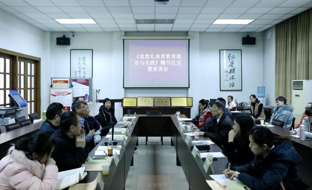 座谈会结束后,王增明教授向图书馆、离退休工作处赠送了《袁敦礼体育教育理论与实践》。