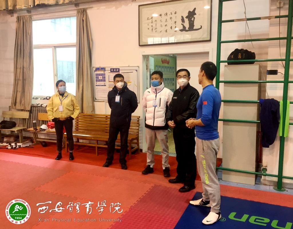 beat365新闻发布的校长朱元利(右二)检查训练场馆疫情防控工作新闻图