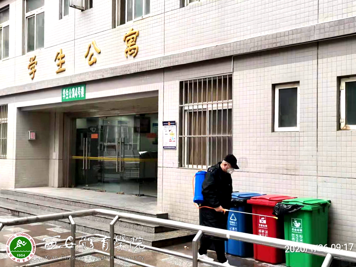 校园环境的消毒是后勤保障组的重点工作之一,保洁绿化中心主任杨生富严格按照“环境卫生不留死角,清洁消毒不留空白”的工作要求,对校园和家属区进行全面清洁、消毒。每天,杨生富根据《后勤管理处(集团)防控新型冠状病毒肺炎应急预案》对工作人员进行体温检测、登记后,带领他们对全校和家属区进行两次全面消毒,对校垃圾堆放点、电梯间、楼梯扶手、家属区楼宇间、教学楼等重点盲点死角区域进行不少于两次的重点消毒,在家属区进行消毒时,杨生富将校园与家属区的消毒情况告知住户,较好地安抚了部分住户的焦虑情绪。