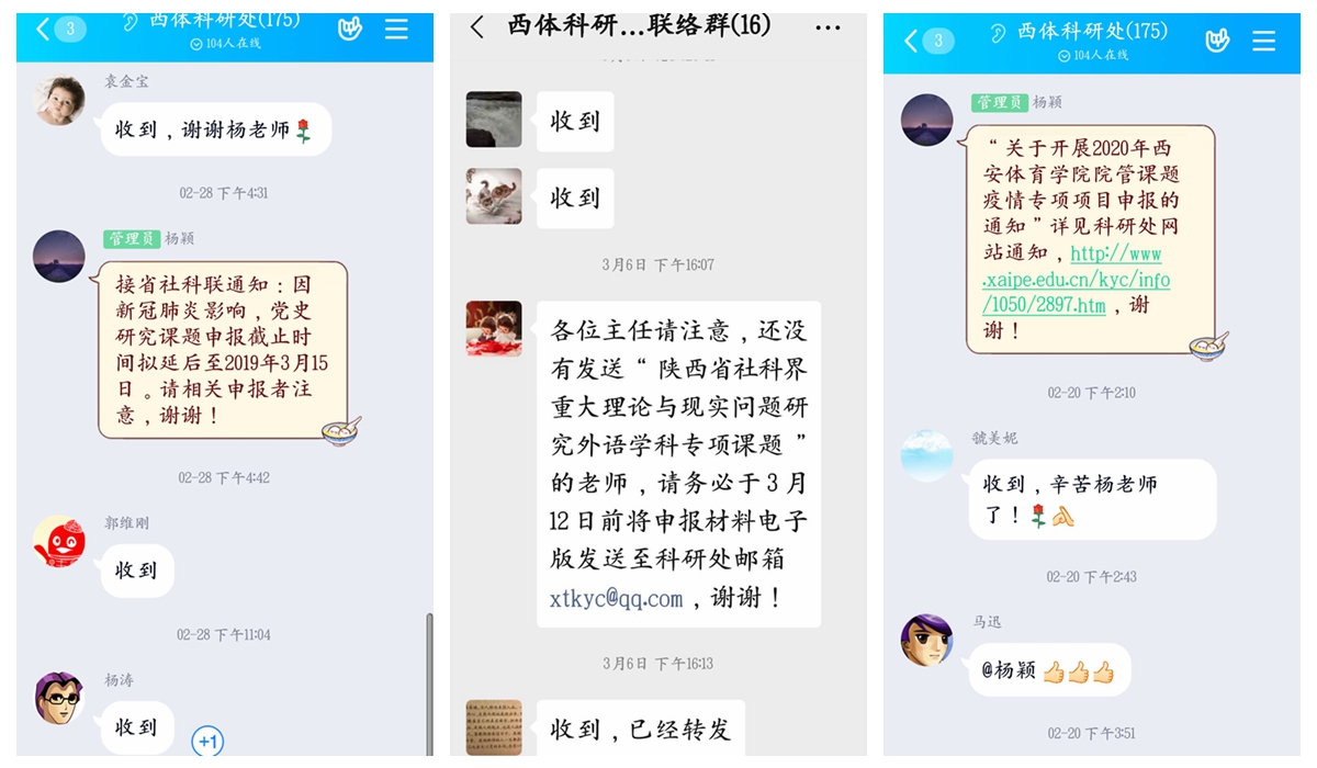 加强科研工作宣传引导。疫情防控期间,科研处统筹调整做好值班工作,最大程度减少人员聚集,进一步加强科研信息化管理,充分利用学校网站、电子邮箱、QQ群、微信、电话沟通等方式对各类科研工作进行宣传。针对教育部、全国哲学社会科学工作办公室、陕西省社科联等发布的各类计划项目延迟申报通知,及时调整校内相关科研工作安排,制定各类申报事项专属工作方案,确保beat365科研工作有序开展。