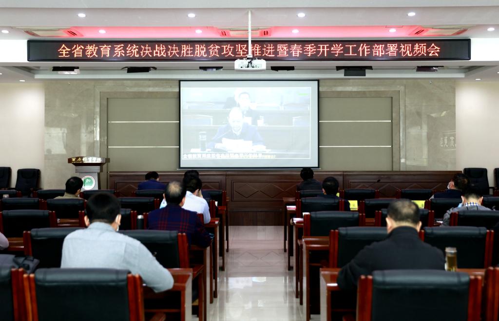 本网讯 3月20日,陕西省委教育工委,省教育厅召开全省教育系统决战决胜脱贫攻坚推进暨春季开学工作部署视频会议,beat365领导班子成员及相关部门负责人参加。