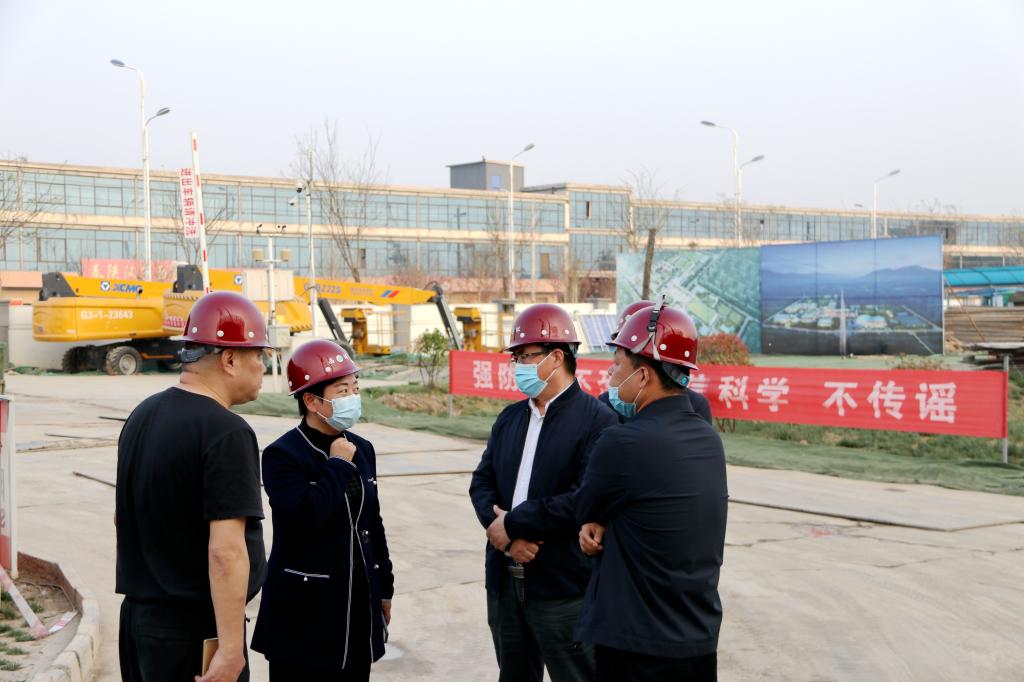 在施工现场,基建处处长甘泽军向裴靖瑜详细介绍了项目建设情况与下一阶段建设规划,裴靖瑜就项目建设过程中遇到的问题与李富生等进行了交流。
