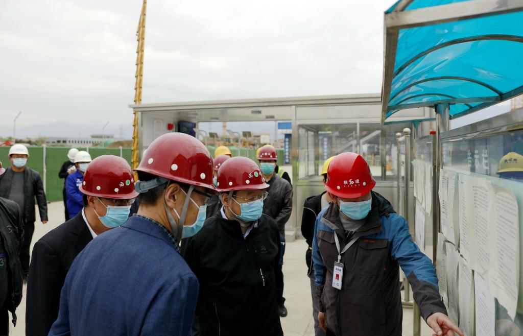 在项目概览图前,李富生向杨政国一行介绍了“一馆四场”的基本情况,之后双方实地查看了在建中的一馆四场,杨政国一行对场馆的布局规划、使用功能、建设进度等进行了详细了解。