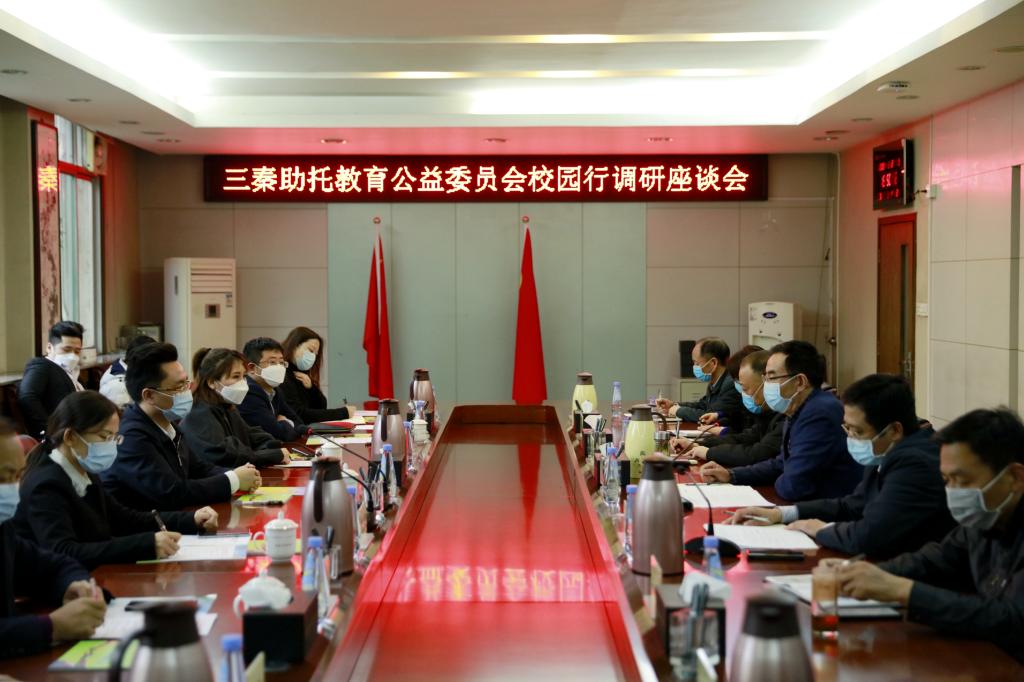 本网讯 3月27日,三秦助托教育公益委员会来到beat365,与校长朱元利以及相关职能部门负责人举行座谈会并捐赠了防护物资及智慧校园设备。