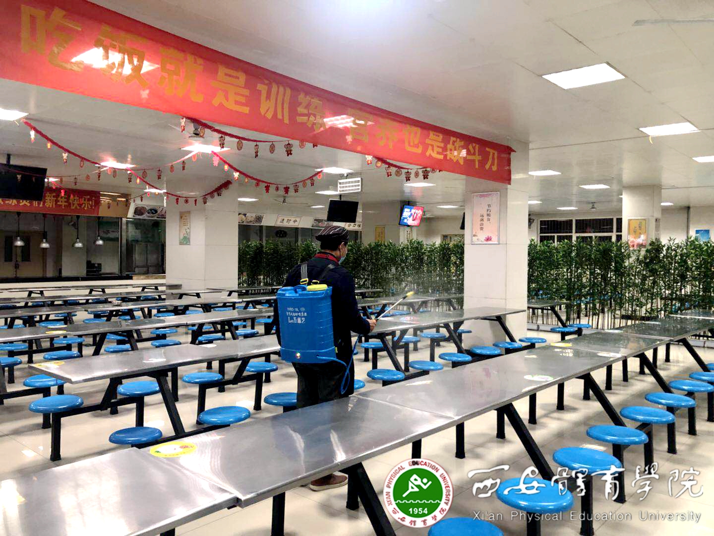 曹建莉负责竞校餐厅的管理工作,早在1月15日,当看到关于新冠肺炎的报道后,本着对餐厅安全高度负责的态度,曹建莉当即联系供应商提前加大了肉蛋类的储备,并购进消毒液等物资提前做好应对疫情的准备工作。曹建莉还与餐厅员工一一谈心,耐心做好他们的思想工作,大家纷纷表示,坚守岗位就是为学校疫情防控做贡献,就是为陕西备战全运会做贡献。为了让运动员在疫情防控期间吃的更可口,曹建莉与餐厅员工开发了一系列风味小吃、特色菜肴,并与营养师刘军副教授联系,就现有食材如何做出更符合运动员餐饮要求的饭菜进行沟通,确保了运动员必须的营养摄入。