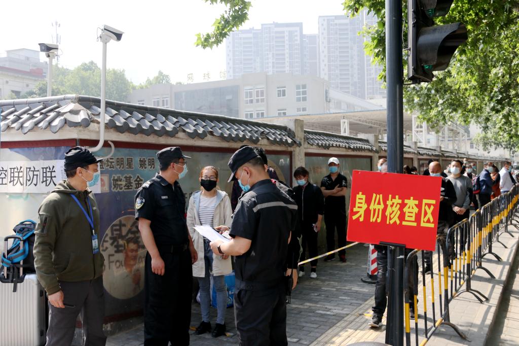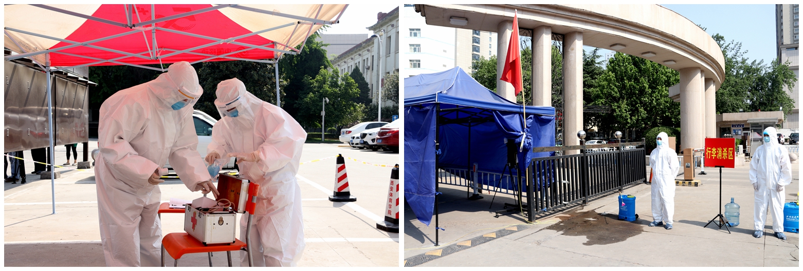 严防实控,反复推演。演练从上午10时开始,各工作组均提前就位,将口罩戴好,熟悉演练流程。演练开始后,教职工依照演练流程,在学校大门外间隔1.5米排队,并打开微信准备扫描二维码。校保卫队员分工明确:负责人流疏导的,提醒大家保持1.5米安全距离,负责核查人员信息的,仔细记录其所属部门并查看二维码信息,负责体温检测的,引导教职工在测温仪规定范围站好,并使用测温枪进行复测。进校后,守卫在侧的医护人员对教职工携带的行李进行消毒,全力守好每一个环节。