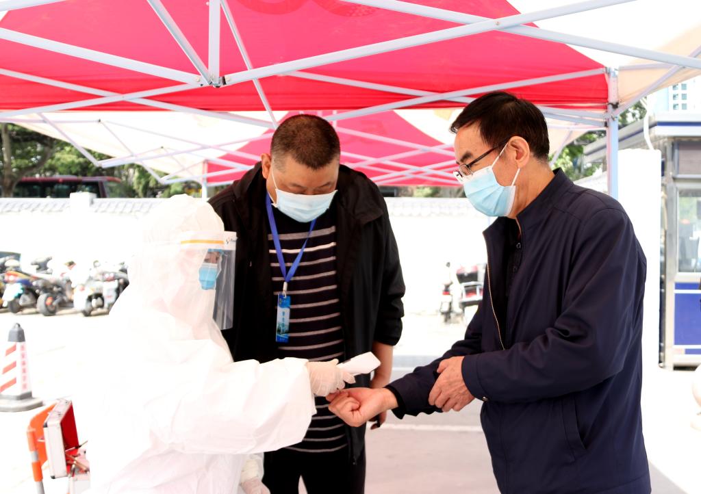 党委书记黄道峻、校长朱元利在相关职能部门负责人的陪同下,对从人员进校的每一个环节仔细检查,发现问题后与相关负责人交流意见,根据学校实际情况立即做出改进。在学校餐厅、校医院等地,黄道峻、朱元利与分管校领导交流讨论,本着“科学 安全 务实 有效”的原则,综合现场负责具体工作同志的意见建议,反复推演学生入校后的各种情况并落实为工作措施。