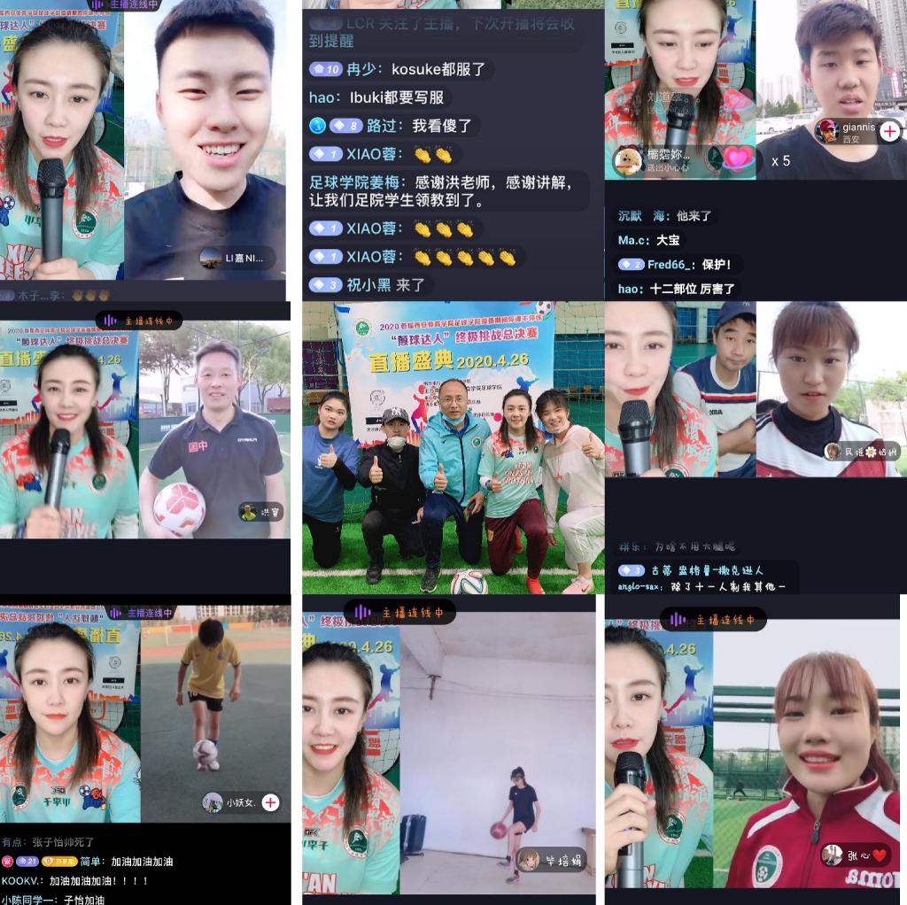 比赛前期,beat365教师与长安竞技队员拍摄了大量短片为比赛造势,吸引了体育教育学院、运动训练学院、足球学院、研究生院的百余名学生报名参赛。通过“抖音”平台,各路高手切磋比拼,观众一饱眼福。决赛时,党委书记黄道峻,党委副书记、纪委书记赵军来到直播间,为选手们加油鼓劲。最终,张子怡等16名同学获奖。