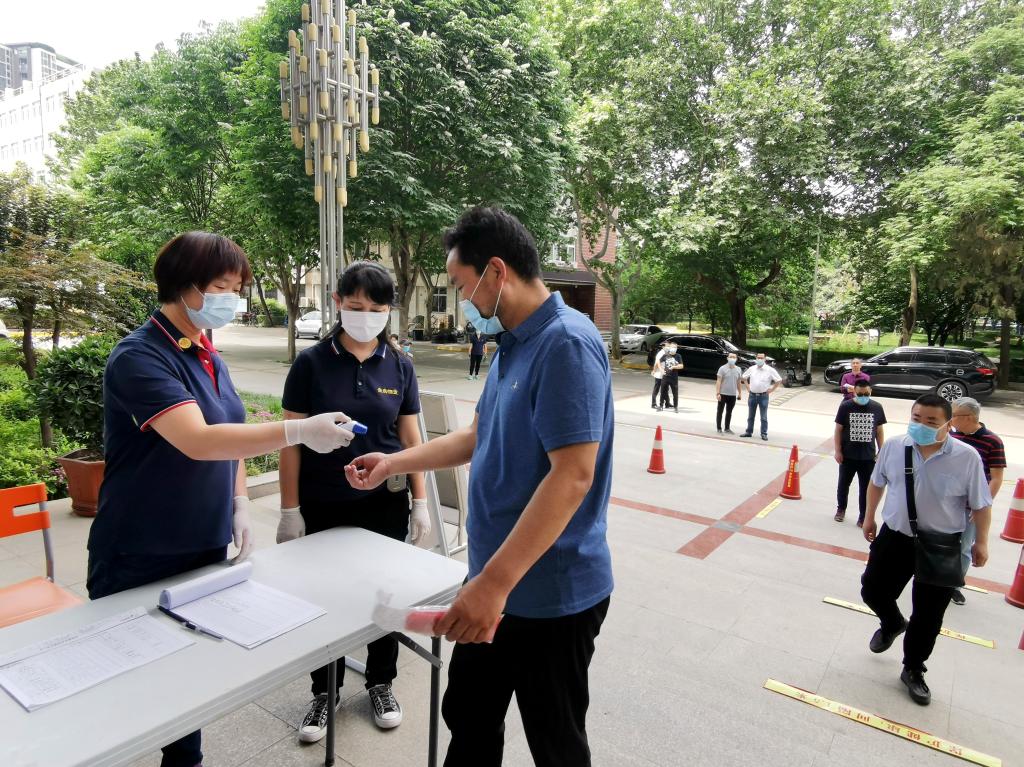 演练人员主动配合体温检测