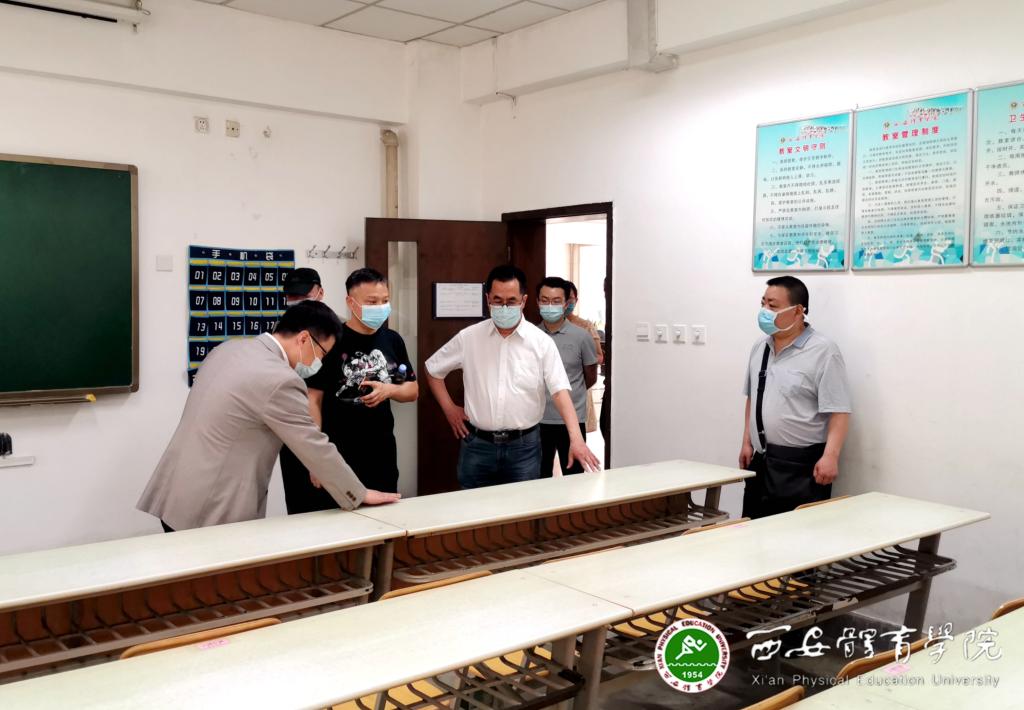 李富生(中)带领后勤管理处相关负责人检查教室防疫工作