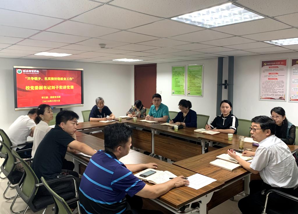 本网讯 为深入学习贯彻习近平总书记来陕考察重要讲话重要指示精神与全国“两会”精神,6月8日上午,党委副书记刘子实以“只争朝夕,扎实做好毕业生稳就业工作”为题,为学工部、团委党支部全体党员讲授了一堂精彩的党课。党课由学工部副部长张娟主持。