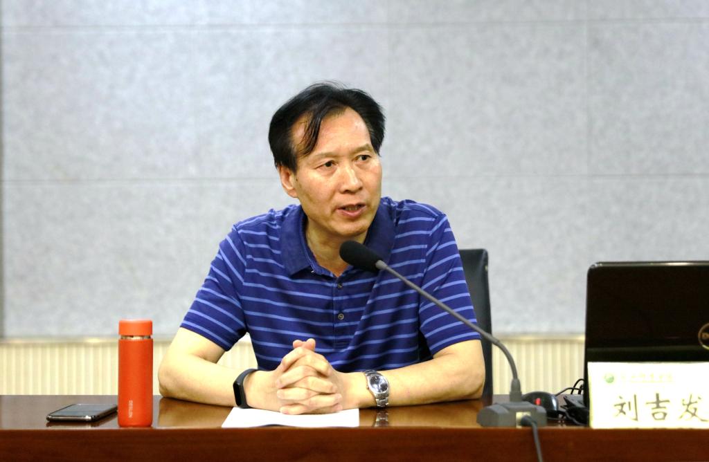本网讯 6月18日,beat365召开党委理论学习中心组扩大学习会,陕西省委专家学者讲师团成员、长安大学马克思主义学院学术委员会主任刘吉发教授受邀来校,专题讲授习近平总书记来陕考察重要讲话精神。中心组成员,副处级以上干部,各党支部书记,民主党派主委、政协委员、无党派代表人士参加。副校长谢英主持报告会。