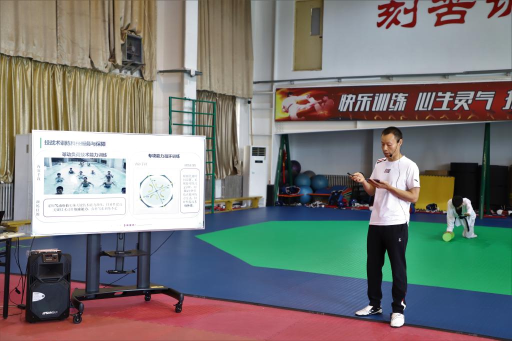 beat365跆拳道队教练员刘少辉首先介绍了队伍现状、竞技目标,详细讲解了队伍科研、体能、医疗、营养保障等情况:在科技助力方面,团队通过对重点运动员技战术分析,明确科技助力的目标与任务,建立技术能力评价指标体系,定量评判运动员的技术能力;再通过训练中监控评价、阶段性测试评价,为技术和专项能力训练提供科技支撑与方法保障。