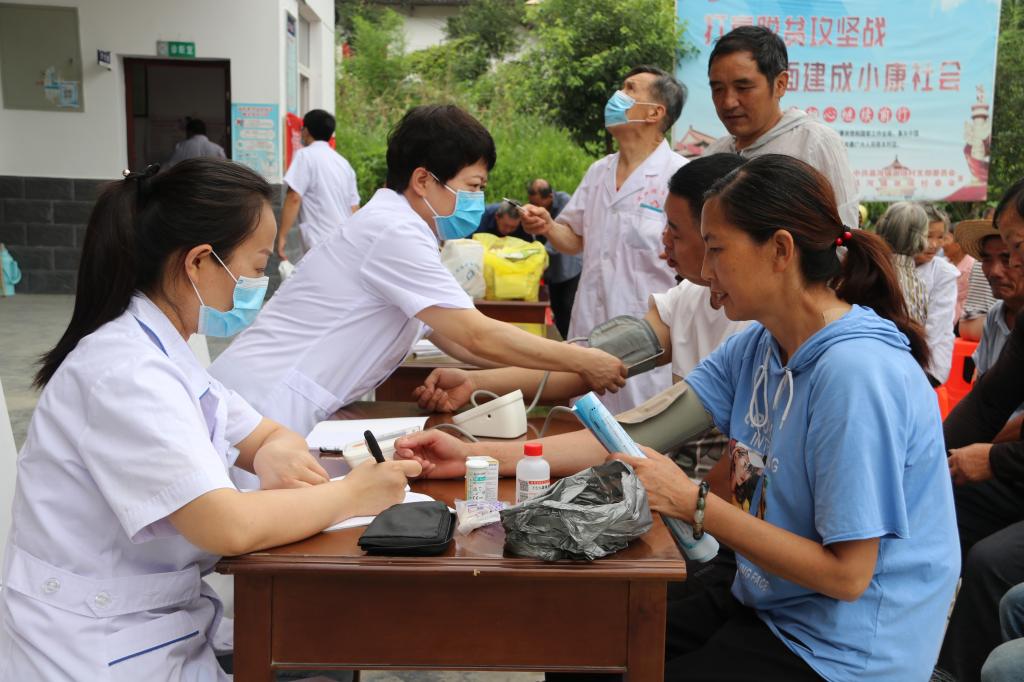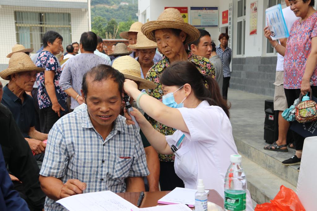 原来,他们早早等候在村委会,是在迎接beat365运动创伤医院的医疗下乡服务团队。该团队由运动与健康科学学院党委书记刘勇、校医院副院长陈鹏、教学实验医院内科、外科、骨伤科、眼耳鼻喉科及护理等8名医务人员组成,携带了超声、心电图、血糖仪等重要仪器设备,为村民进行健康扶贫义诊活动。
