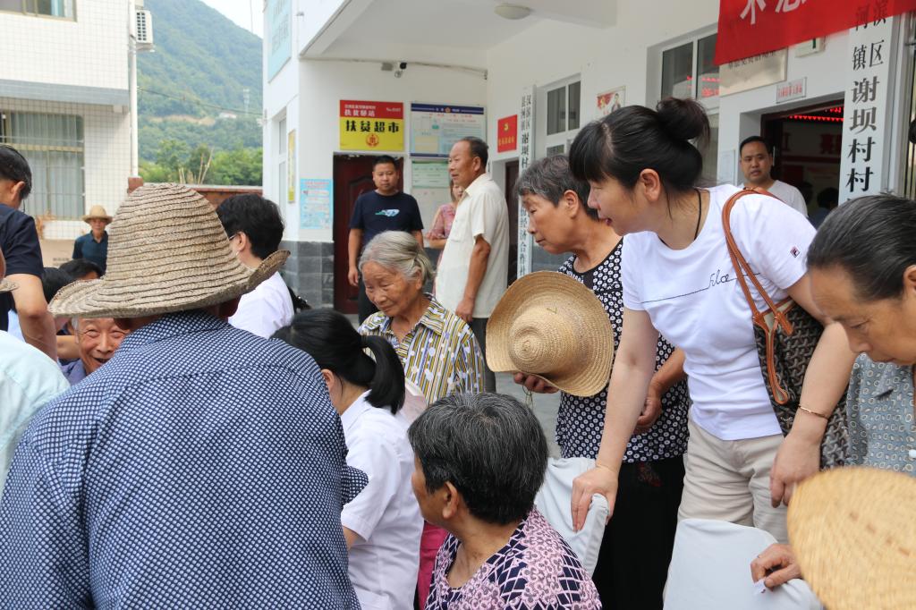 早上八点,beat365扶贫工作队伍一行18人沿着曲折的山路,乘车驶向谢坝村。经过一个多小时的车程,来到村委会,院子里已经坐满了等候的村民,一个坐在后排的老汉率先看到了驶来的汽车,高兴地拍着手提醒其他村民:“来了,来了,他们来了!”