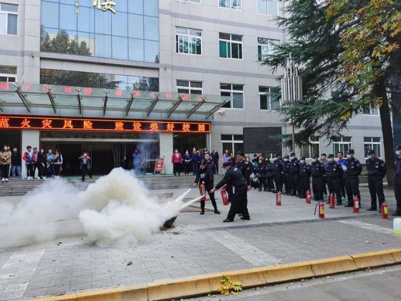 赵海鹏就报火警的相关注意事项、火灾现场逃生自救常识、如何使用逃生面罩等方面做了重点讲解,还为大家演示了灭火器的正确使用方法。随后学校组织部分师生员工在教学楼前进行消防灭火实战演练,师生员工踊跃参与,赵海鹏进行现场指导。