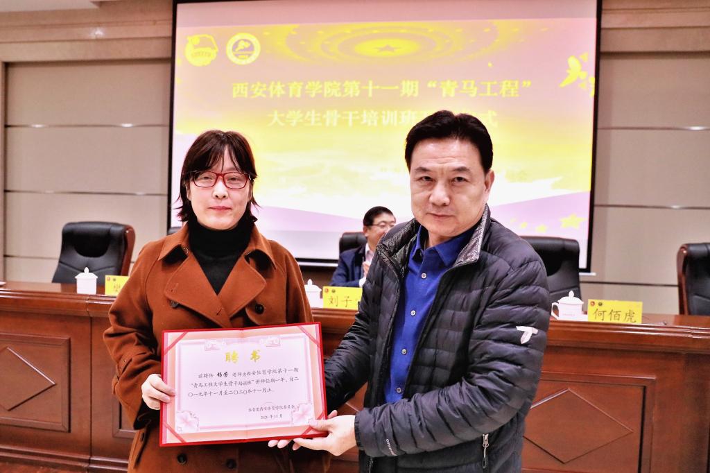 开班仪式在嘹亮的国歌声中拉开了帷幕,熊辉就本期“青马工程”大学生骨干培训班安排作了说明;校党委组织部部长何佰虎为beat365“青马工程”大学生骨干培训班授课教师代表杨芳颁发了聘书;本期学员代表薛柯柯进行了表态发言。