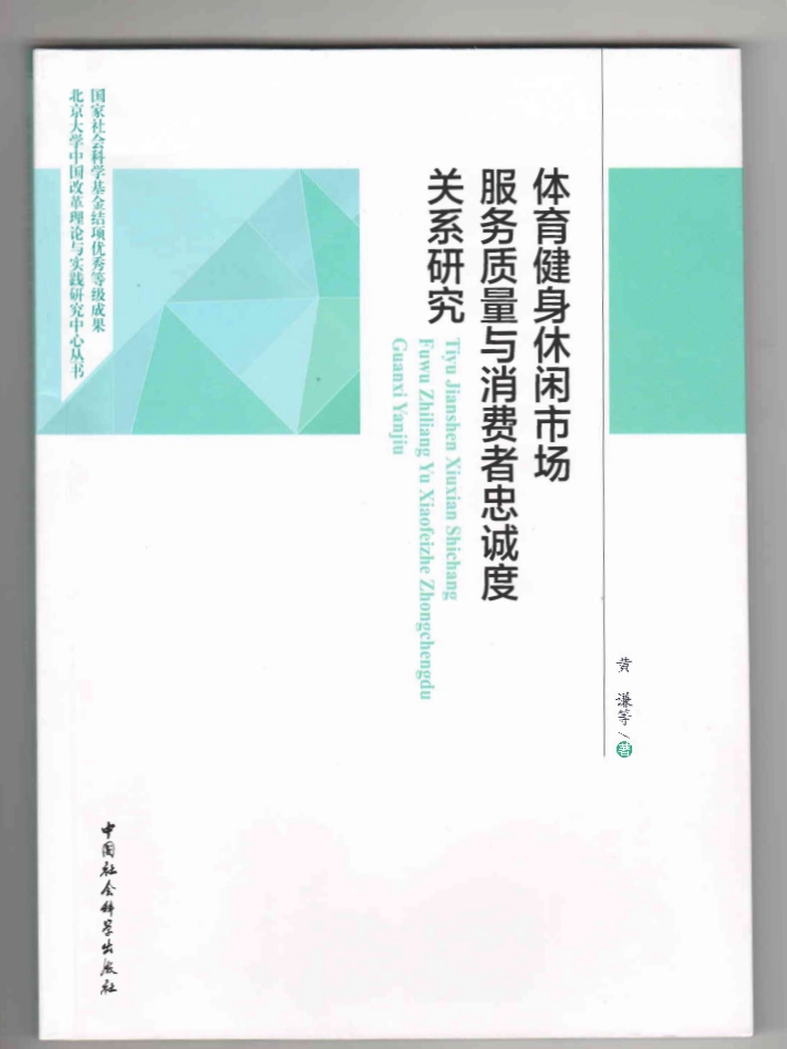 黄谦教授等的著作《体育健身休闲市场服务质量与消费者忠诚度关系研究》是以国家社科基金优秀结题报告为基础,首次提出了健身休闲领域服务质量的维度,发展了该领域的服务质量的量表并确定了测量模型,从而构建了服务质量影响健身休闲消费忠诚度的机理的研究框架同时进行了验证,为我国全民健身和体育产业领域提供了新的理论支持。