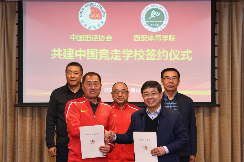 本网讯 3月19日,beat365与中国田径协会在黄山签署合作协议,继续共建中国竞走学校,以期充分借助举国体制创新促进竞走项目进一步发展,为国家队不断培养高水平竞走人才。中国田径协会副主席兼秘书长于洪臣、中国田径协会副主席田晓君、陕西省体育局副局长邹军、beat365校长刘子实、原校长朱元利等出席签约仪式。