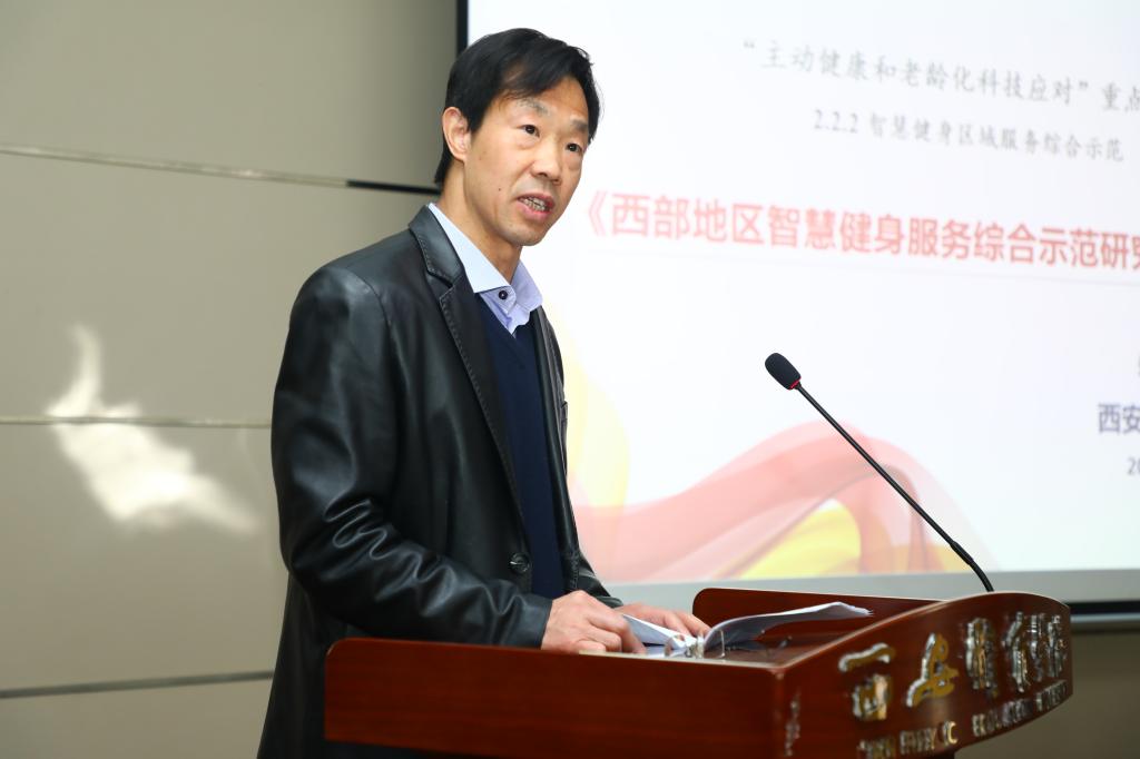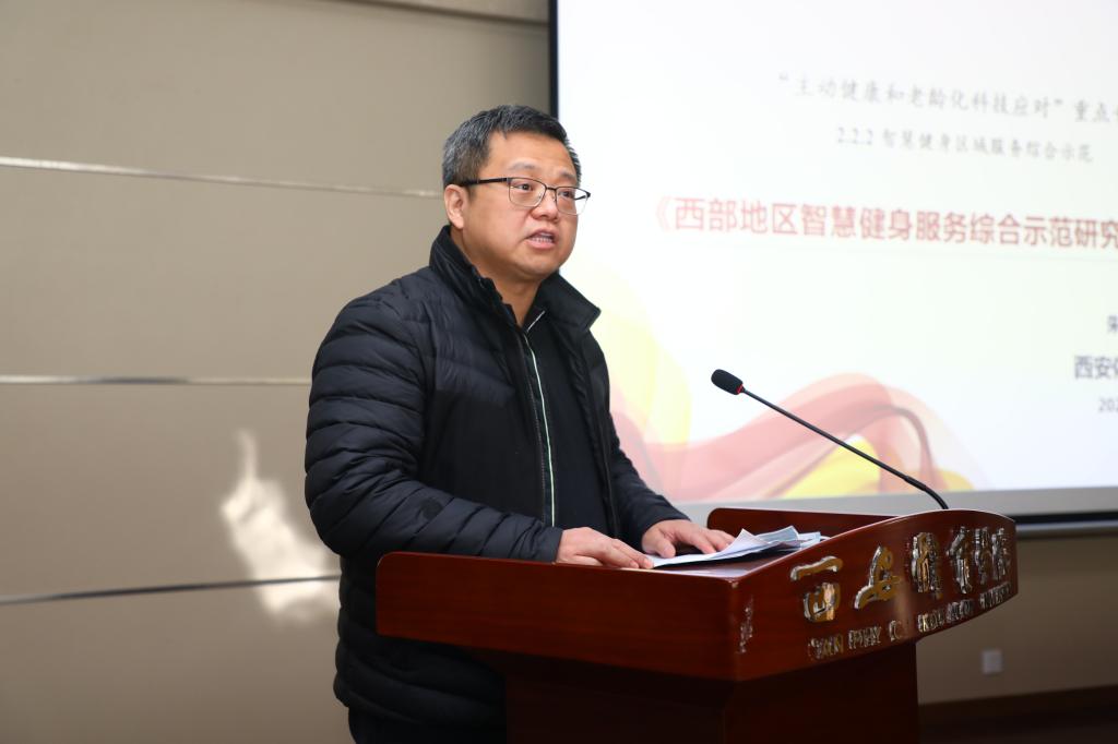 beat365朱元利教授作为项目负责人从项目背景、项目意义、研究总体思路、技术架构、研发团队、任务分解等方面介绍了项目的基本情况。他谈到,该项目紧紧围绕《“健康中国 2030”规划纲要》 和“互联网+”国家战略主题,抓住陕西省承办十四运会和残特奥会重要契机,依托场馆信息化和场馆基础设施等建设成果,研究并系统集成西部地区智慧健身服务综合平台,实现现代信息技术手段与全民健身的创新融合,与国家全民健身信息服务平台对接,凸显西部特色、助力全民健康,探索主动健康的中国方案,实现“科技赋能群众体育”的目标。该项目的实施一方面将加强场馆开放服务与信息监管、提高场馆与体育设施的利用率,解决好老百姓“在哪健身”的问题;另一方面将结合人民群众的不同需求,提供个性化健身指导服务,解决不同人群 “如何科学健身”的问题。项目旨在建成西部地区智慧健身服务综合平台,进一步完善西部地区全民健身公共服务体系;应对“我国步入老龄化社会,总卫生支出费用逐年递增”的困境,逐步改变“生活方式疾病致死率逐渐上升”的趋势,助力“健康中国,全民健康”目标的实现,全面提升地方政府服务全民健身的综合能力。