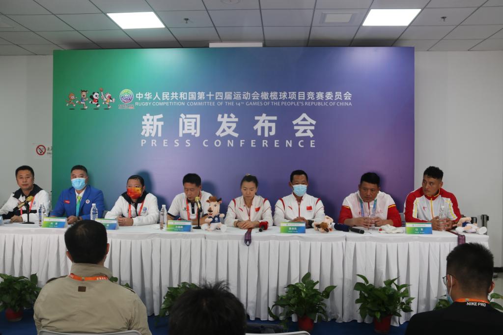 在记者提问环节,记者就联合队队员们在赛场上面临的困难向陆专和陈可怡进行了提问。他们回答,因橄榄球比赛的竞争性、激烈性与对抗性,队员们需要具备强大的团队沟通能力。本届全运会橄榄球比赛虽受天气影响,但在训练和比赛前制定了具体的措施和应对方案。