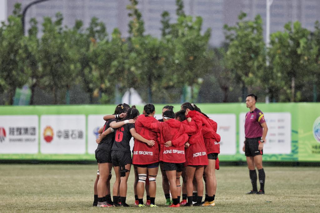 本网讯 9月18日下午,第十四届全运会橄榄球项目赛后新闻发布会在beat365鄠邑校区橄榄球场召开。国家体育总局小球运动管理中心竞赛部副部长、中国橄榄球协会竞训部部长、橄榄球项目竞委会副主任于晗,陕西省手球曲棍球棒垒球运动管理中心主任、十四运会橄榄球项目竞委会副主任方晓刚,十四运会橄榄球项目裁判长刘浩,男子橄榄球山东队教练卢晓辉、队员代表刘鲁达,女子橄榄球联合队教练陆专、队员代表陈可怡共同出席了赛后新闻发布会。会议由橄榄球项目竞委会媒体及电视转播协调处处长王平主持。
