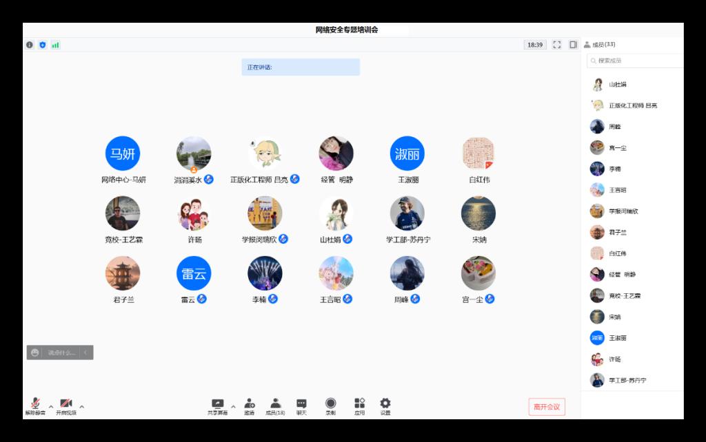 本网讯 为进一步强化师生网络安全意识,提升信息化素养,11月22日下午,网络管理中心以线上方式组织开展网络安全专题培训。培训会由网络管理中心主任魏娟丽主持。各职能部门,直附属单位,二级学院信息化联络员、网站管理员参加培训。