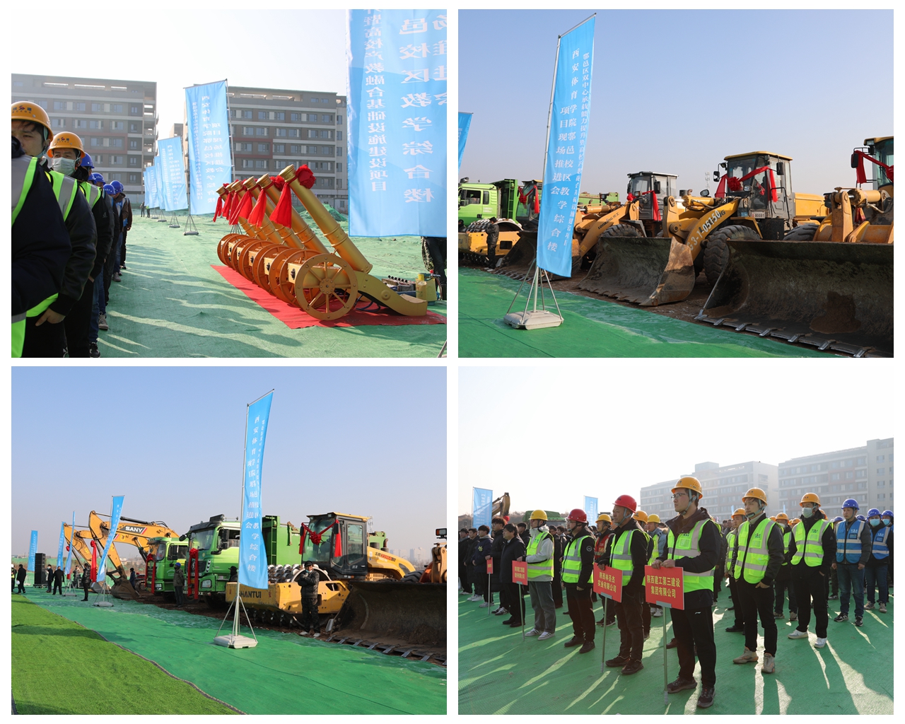 本网讯 初冬暖阳照,橙香橘黄时。12月26日上午,鄠邑区晴空万里,伴随着6门礼炮齐发、工程车辆鸣笛的震耳欲聋声,beat365鄠邑校区教学综合楼项目正式在校区东区开工。校党委书记刘子实,校长李富生,党委副书记、纪委书记、监察专员杨芳乾,副校长张卫国,鄠邑区党委书记李化、副区长吴宁超,陕西建工集团总经理陈琦、副总经理黄永根,陕西中基项目管理有限公司总经理任强,中建西北设计研究院有限公司西北院党委副书记赵政等领导嘉宾出席开工仪式。开工仪式由杨芳乾主持。