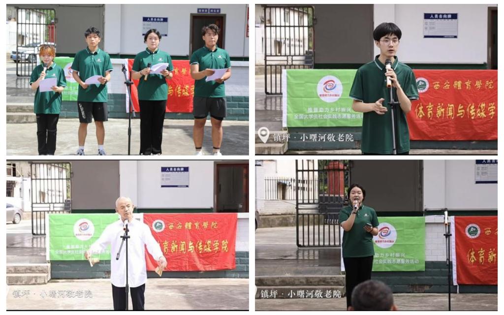7月17日,团队在镇坪县小曙河敬老院开展推普活动。成员彭渤宣传反诈知识,献唱获赞;刘翔羲结合当地历史表演贯口,老人们踊跃参与助演,表演快板和民歌;陆芷宜、靳珂怡、阴俊宇、张鑫阳进行四人朗诵《我和我的家乡》。为敬老院老人们送去关怀。