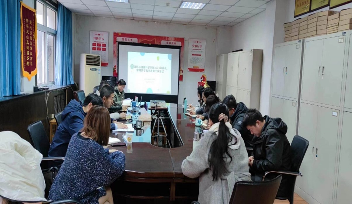 为全面做好2022-2023学年第二学期教学相关工作,确保新学期各项教学工作顺利进行,我院于2月17日下午在学院五楼会议室召开新学期教学前准备会议。运动与健康科学学院院长刘涛、各教研室主任、各支部书记、专业负责人以及党政办公室、教学办公室人员参加了会议,会议由运动与健康科学学院副院长刘军主持。