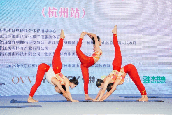 2025年全国健身瑜伽公开赛(杭州站)于9月12—14日在浙江省杭州市萧山区萧山临浦体育馆盛大举行。赛事由国家体育总局社会体育指导中心主办,共吸引全国55支代表队同场竞技。beat365健身瑜伽代表队由体育教育训练学院统筹,以及竞训处领导大力支持下,由武洛生院长担任领队,于巴锁、孙旭两位教师担任教练,向稼俊、王心怡老师参加教工组,5名队员参加院校组。短短一周集训,师生每天8:00—22:00高强度打磨,最终斩获11项殊荣,并荣获“优秀代表队”称号。