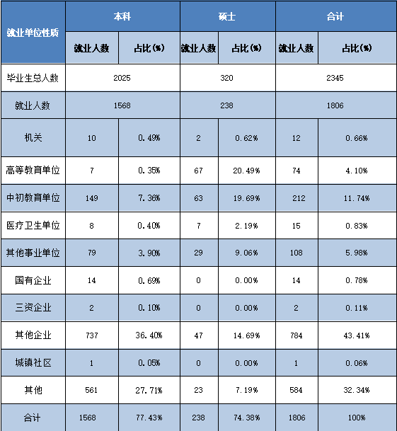 (一)毕业生就业单位性质分布