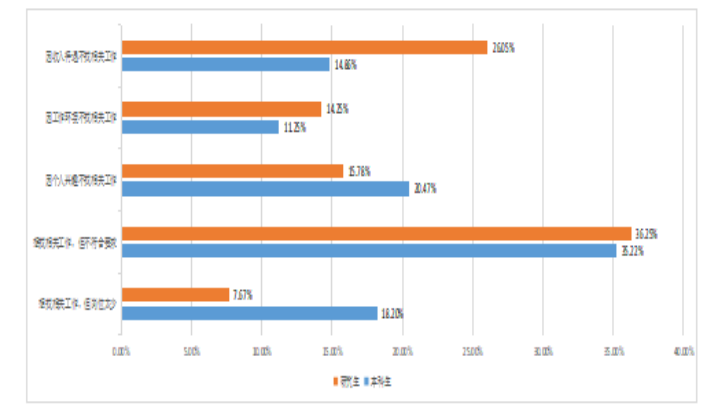 在调查的2021届的毕业生中,63.99%毕业生毕业以后的工作与他们在学校所学专业相关,其中本科毕业生的专业相关度为67.25%,毕业研究生的相关度为63.57%。对不相关的原因进行询问,最后进行统计,结果如下: