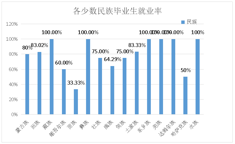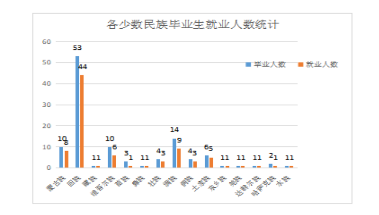 图2-1各少数民族毕业生就业人数统计