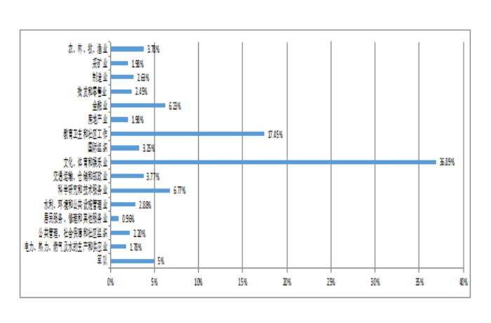 在2022届毕业生就业意向与期待调查问卷中,学生意向较高的行业是“文化、体育和娱乐业”(36.89%)和“教育、卫生和社区工作”(17.45%)。