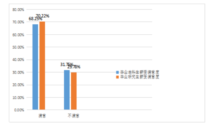 在薪资满意度方面:2021届本科毕业生对薪资满意的占68.25%,毕业研究生对薪资满意的占70.22%。