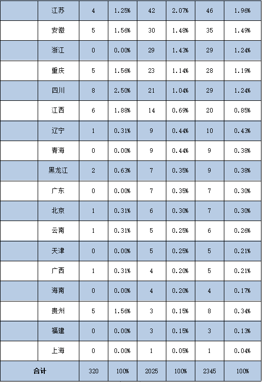 表 1—4 2021届毕业生生源地分布统计