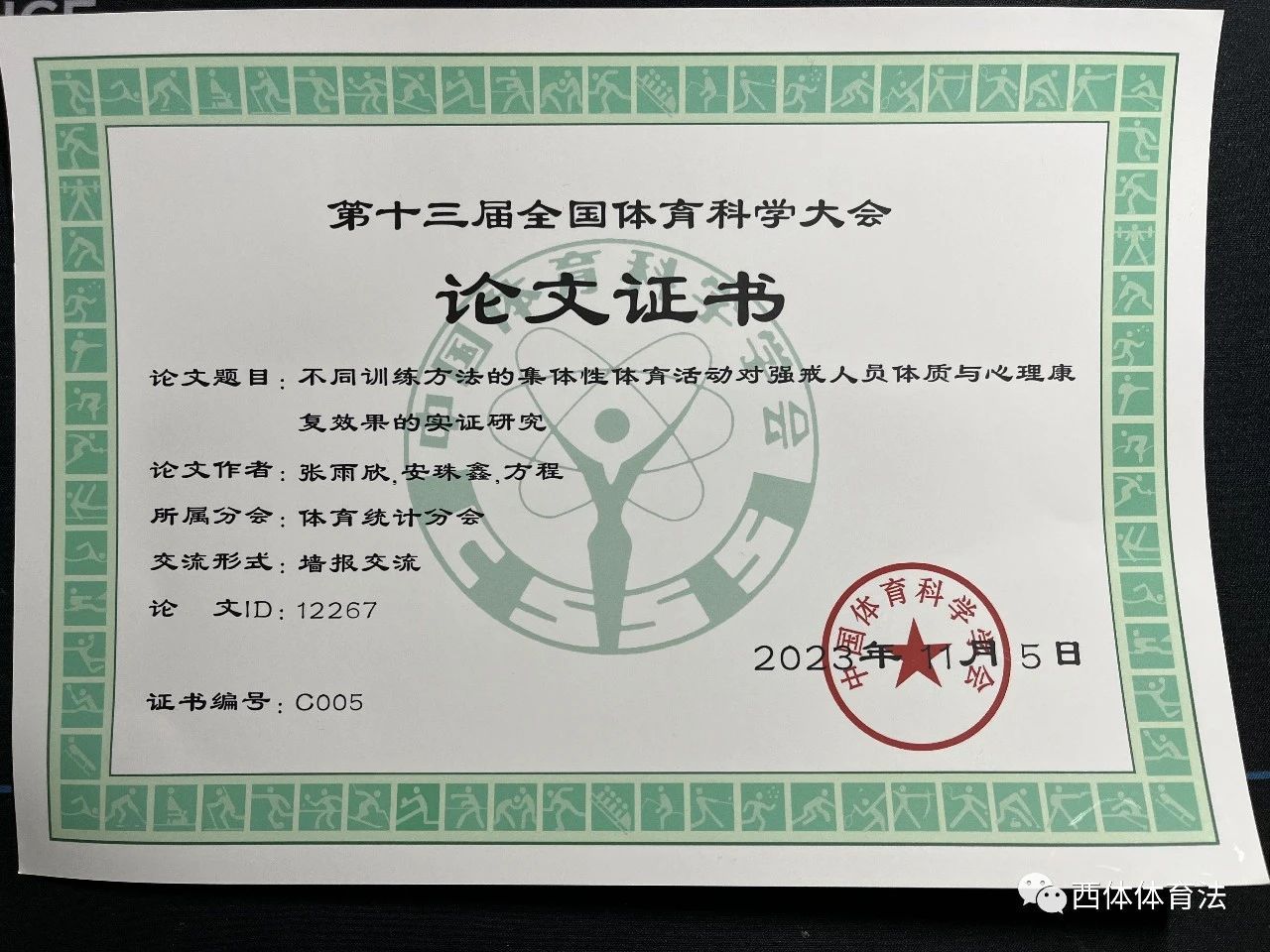 2023年11月3日-5日,第十三届全国体育科学大会在天津举行。在本次大会上,我研究中心师生表现出极大的热情,积极投稿28篇,师生们的报告得到了与会专家的积极评价,受邀进行专题报告交流13篇论文,墙报交流15篇论文。